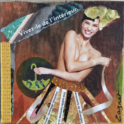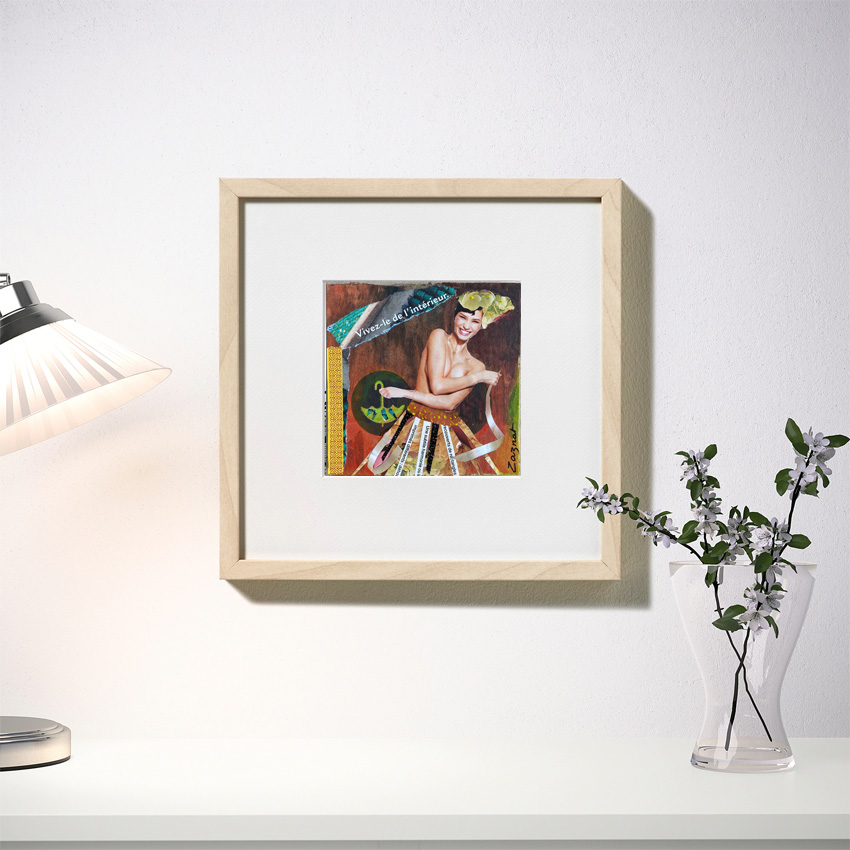 Collage et peinture sur carton épais. Modèle unique. Format carré 13 x 13 cm. Vendu sans cadre.